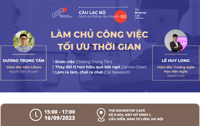 Nguyễn Dương2023-10-24T14:17:35+07:00CLB Sách và những câu chuyện số 3: LÀM CHỦ CÔNG VIỆC, TỐI ƯU THỜI GIAN