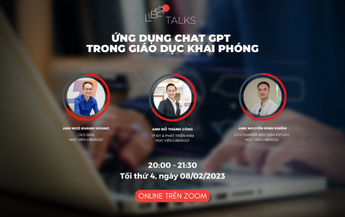 Nguyễn Dương2023-03-01T22:21:50+07:00TRÒ CHUYỆN LIBERO #1: Ứng dụng ChatGPT trong giáo dục khai phóng