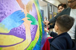 Tại trường Hy Vọng (Hope School), hơn 200 em học sinh cùng các thầy cô đã biến không gian học tập thành ngày hội của sắc màu và nụ cười. Không chỉ cùng nhau hoàn thiện bức tranh chung, các em còn được tự do khám phá bản thân qua 6 “Trạm Yêu thương”: Từ hội họa, âm nhạc, công nghệ đến kỹ năng sống.