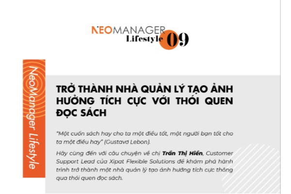 NeoManager Lifestyle 09 – Văn hóa đọc sách View Larger Image Khóa học liên quan:Chương trình đào tạo quản lý NeoManagerBài viết liên quan:NeoManager Lifestyle 10 – Truyền cảm hứnglibadmin2023-05-10T03:38:31+07:0010/05/2023|Tags: neomanager lifestyle|Share This Story, Choose Your Platform!FacebookXLinkedIn Bài viết liên quan Management Lifestyle 26 – Phát triển kinh doanh B2B Management Lifestyle 26 – Phát triển kinh doanh B2B Management Lifestyle 25 – Cá nhân hiệu suất và tổ chức hiệu quả Management Lifestyle 25 – Cá nhân hiệu suất và tổ chức hiệu quả Management Lifestyle 24 – Đổi mới tư duy Management Lifestyle 24 – Đổi mới tư duy Management Lifestyle 23 – Quản trị nhân tài Management Lifestyle 23 – Quản trị nhân tài